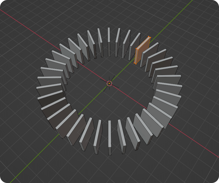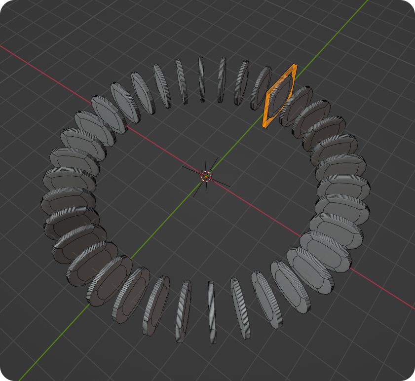 Array 할 오브젝트의 원점도 조정했고, Array의 오브젝트 오프셋 설정까지 되었다면, 이제 오브젝트 오프셋 - Empty 오브젝트의 회전값을 조절한다. 겹쳐있던 복사본들이 둥글게 정렬된다.