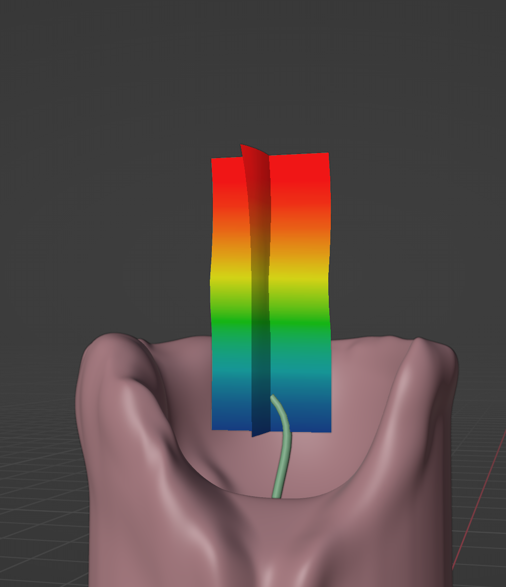 Weight Paint 모드로 들어가면 왼쪽에 브러시 도구들이 있다. 이것을 통해 하나의 오브젝트에 빨간색부터 파란색까지의 범위를 칠해줄 수 있다. 촛불은 수직 형태이니 그라디언트 툴을 통해 색을 칠해주었다. 이 색은 하나의 영역으로 Wave 모디파이어가 적용되는 값을 조정하는 역할을 수행한다. 그러기 위해서는 Modifier - Wave - Vertex Group에서 만들어둔 영역을 선택해 주면 적용된다.