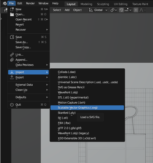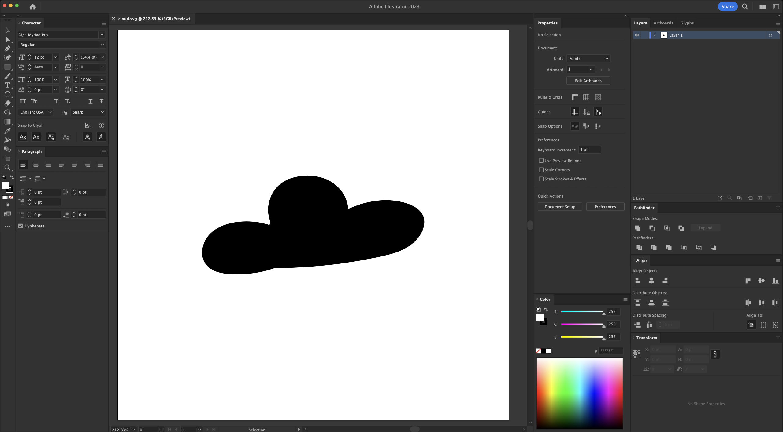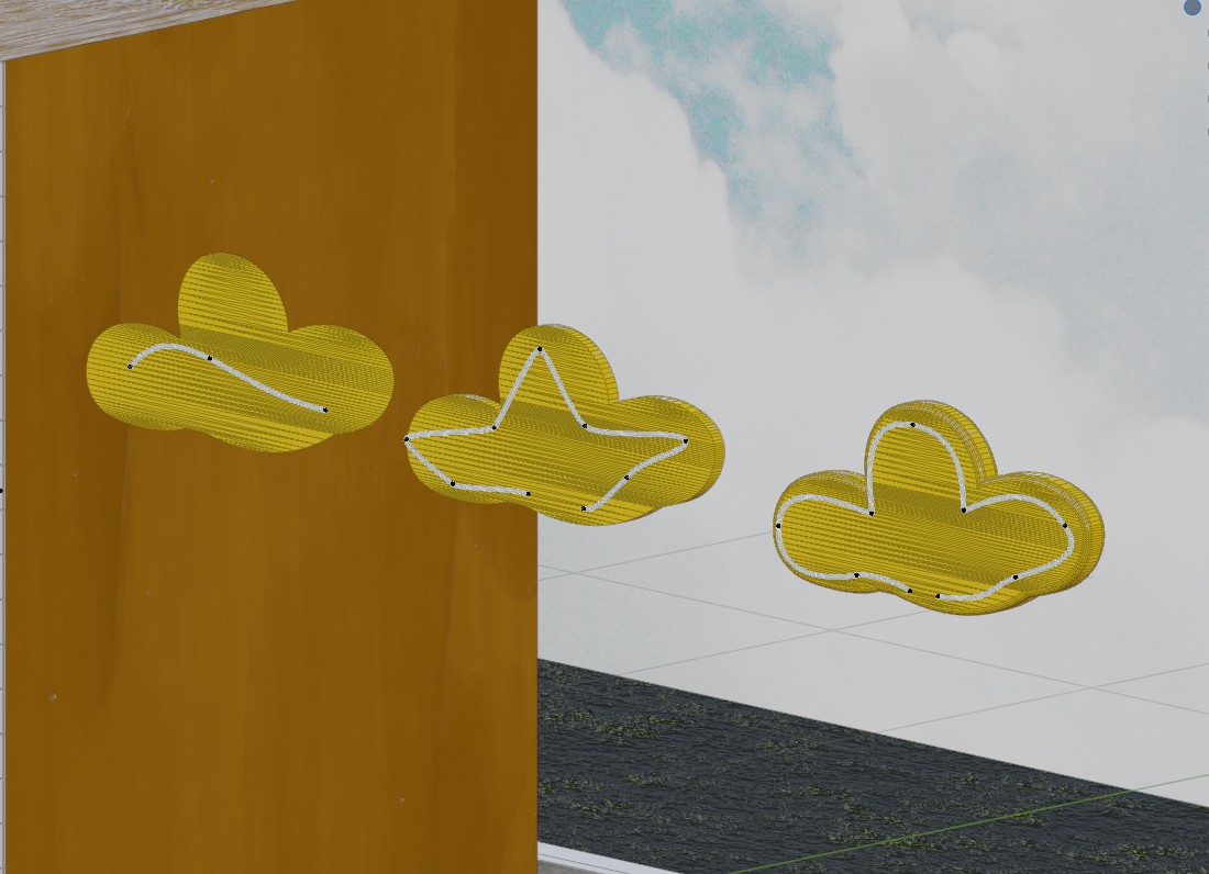 일러스트레이터에서 간단한 구름 모양의 path를 그려주었다. 일러스트레이터에서 SVG 형식으로 저장이 가능하고, 블렌더 왼쪽 상단 File - Import에서 SVG 파일을 임포트 할 수 있다.