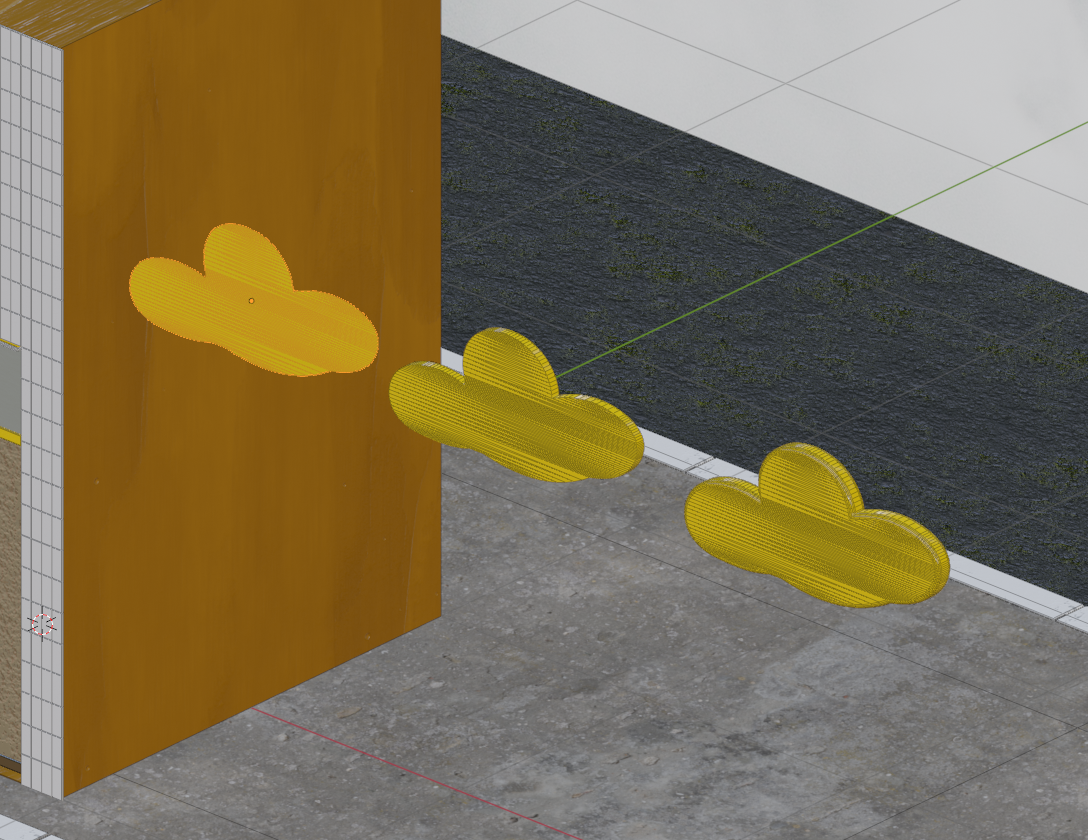 카메라가 담는 장면을 기준으로 제작을 하는 편이다. 담기지 않을 것이라면 제작 환경 내에 있는 것이 컴퓨터에 부담이 되기에 필요한 것만 담는다. 타일도 건물 전체적으로 붙일 필요가 없다. 막상 다른 각도에서 보니, 앞면만 있는 게 이쁜 것 같기도 하다. 메인 건물은 Plain으로 모델링하였다. Extrude와 Inset Face로 간단히 만들었다.
